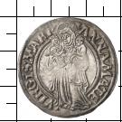 ANNA MATE VIRGIS MARI. Umschrift umgeben von Zierkreis, im Feld, den Kreis durchbrechend, die Darstellung der Heiligen Anna Selbdritt (die Heilige Anna mit ihrer Tochter Maria und dem Christuskind).