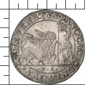 S M VENETVS PASC CIC-ONIA DVX // G S [G S = Gerolamo Semitecolo]. Der Markuslöwe links dem Dogen rechts gegenüberstehend.