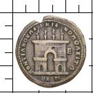 VP - ΠONTIANOV MA-PKIA-NOΠOΛEITΩ-N. Stadttor mit vier Statuen auf Basen darauf. Im r. F. das Wertzeichen E (= fünf assaria).