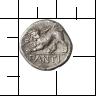ΠΑΝTI. Löwe nach l. mit einem Speer im Maul. |