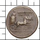 GERMANICVS / CAESAR. Germanicus steht in Viergespann (quadriga) nach r., im l. Arm ein von einem Adler bekröntes Zepter haltend. |