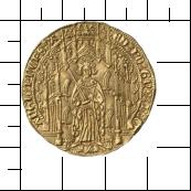 ED PO GNS REG ANGL PNCPS A [Edward Primo Genitus Regis Anglie Princeps Aquitanie]. Edward Prince of Wales in einem gotischen Portal stehend flankiert von vier Straußenfedern. In der Rechten Schwert haltend und die Linke zum Gruß erhoben, zu seinen Füßen zwei Leoparden. |