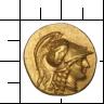 Kopf der Athena mit korinthischem Helm nach r. Auf dem Helmkessel ein Greif nach r.