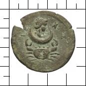 Schrötlingssprung. Zodiacus: Mond in Krebs. Der römische Kaiser Antoninus Pius ließ im Jahr 144/145 n. Chr. eine Serie alexandrinischer Münzen prägen, die den Tierkreis (zodiacus) thematisiert. Die bronzenen Drachmen zeigen auf der Vorderseite die Porträtbüste des Kaisers und auf den Rückseiten die zwölf Tierkreiszeichen jeweils mit den sie begleitenden Planetengöttern. Manche Drachmen bilden auf der Rückseite den kompletten Tierkreis (Zodiacus) ab. Diese Tierkreiszeichen entsprechen in Aussehen und Namen zum Großteil den uns auch heute noch geläufigen. Dies betrifft vor allem die Tierzeichen - Widder, Stier, Krebs, Löwe, Fische und Skorpion – nur der Steinbock wird in der Antike als Mischwesen aus Ziege und Fisch (sog. Ziegenfisch oder capricornus) dargestellt. Wie auf den alexandrinischen Drachmen wird auch heute noch der Schütze häufig als Kentaur, als Fabelwesen aus Mensch und Pferd, der Pfeil und Bogen spannt und der Wassermann als Jüngling, der aus einem Gefäß Wasser schüttet, gebildet. Die antiken Münzen zeigen als Versinnbildlichung des Zeichens Jungfrau, die jungfräuliche Göttin Athena und als Zwillinge den Gott Apollon und den Halbgott Herakles. Über oder neben dem Tierkreiszeichen erscheint auf den Münzen jeweils die Büste eines Gottes oder einer Göttin, die einen Planeten symbolisieren, was die zum Sternzeichen gehörige Planetenkonstellation für das Jahr 144/145 meint, z.B. Saturn in Wassermann oder Mars in Skorpion.