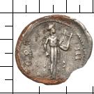 COS - III. Apollo steht im langem Gewand in der Vorderansicht, den Kopf nach r. gewandt. Er hält eine Leier (kithara) im l. Arm und in der r. Hand ein Schlagstück (plectrum). |