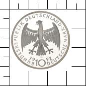 BGBl. vom 4. Juni 1992 Teil I S. 1028; P. Arnold - H. Küthmann - D. Steinhilber, Grosser deutscher Münzkatalog von 1800 bis heute. 19. Auflage (2003) Nr. 263; K. Jaeger, Die deutschen Münzen seit 1871. 19. Auflage (2005) Nr. 453; G. Dethlefs - W. Steguweit (Hrsg.), GeldKunst KunstGeld. Deutsche Gedenkmünzen seit 1949. Gestaltung und Gestalter. Die Kunstmedaille in Deutschland 22 (2005) 324 Nr. 66; G. Schön, Weltmünzkatalog 20. Jahrhundert von 1900 bis 2006. 35. Auflage (2007) 509 Nr. 177.
