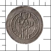 LVDOLFVS - ARCHIEPC. Erzbischof stehend mit Krummstab und Buch. Auf dem Rand Rosetten.