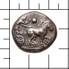 Quadratum incusum mit kleinerem Mittelquadrat, darin fliegt ein Adler mit ausgebreiteten Schwingen nach l. Der breite Rand darum ist wie ein Rahmen mit aufgerauter Oberfläche und Gehrung gestaltet. |