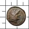 Männlicher Kopf nach r. mit Drachen (ketos) als Haartracht, dahinter 'vatl'. |