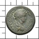 [E MENANΔ]-POV - KΛEAN AP A // AΔPIAN-/EΩN. Der Kaiser (Caracalla) reitet mit wehendem Mantel nach r. In seiner erhobenen r. Hand hält er einen Speer. Vor seinem Pferd ein Löwe nach r.