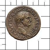 IMP CAES VESPAS AVG P M TR P P P COS III. Kopf des Vespasianus mit Lorbeerkranz nach r.