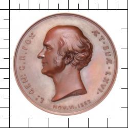 L: GEN: C. R. FOX AET SUAE LXVI // NOV. VI. 1862 [AE ligiert]. Kopf des Charles R. Fox nach links. Am Halsabschnitt die Signatur J. E. Boehm fc. |