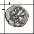 Kopf der Artemis Diktynna mit Kranz aus Weinblättern und dreifachem Ohrring nach r. Signatur NEYΑΝΤΟΣ ΕΠΟ[ΕΙ] in winzigen Buchstaben im l. F.