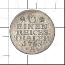 6 / EINEN / REICHS/THALER // 17-65. Unten Münzstättenzeichen A zwischen zwei kleinen Rosetten, Wertzahl zwischen zwei großen Rosetten.