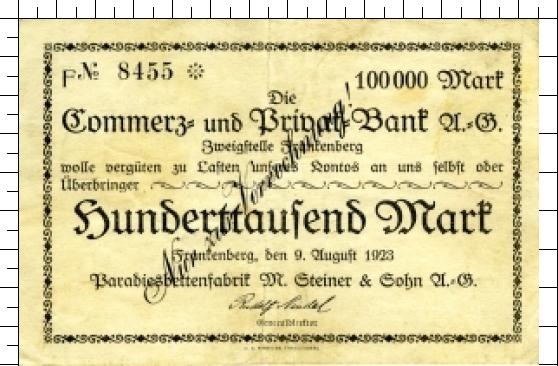 Paradiesbettenfabrik Steiner Frankenberg: 100.000 Mark 19231923 |