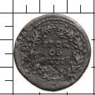 S P Q R / OB / [CI]V SER. Dreizeilige Aufschrift in Eichenkranz.