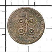 1390 DIE 19 IVNII RECVPER-AVIT PADVAM ET C' [Trennungszeichen Kringel]. Vierrädiges Wagenunterteil (carro) zwischen F-R innerhalb eines Lilienkranzes.