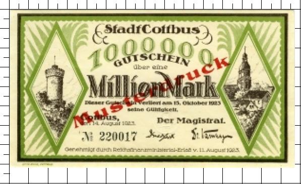 Cottbus, Stadt: 1 Million Mark 1923 Probe1923 |