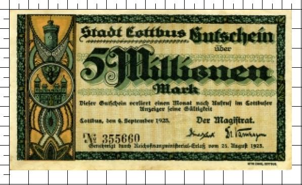 Cottbus, Stadt: 5 Millionen Mark 19231923 |