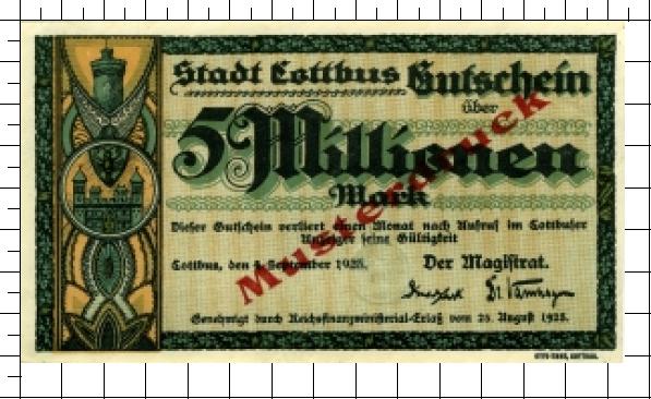 Cottbus, Stadt: 5 Millionen Mark 1923 Probe1923 |