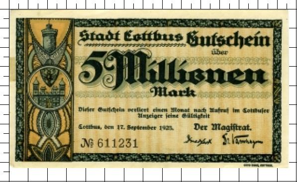 Cottbus, Stadt: 5 Millionen Mark 19231923 |