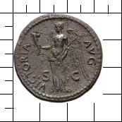 VICTORIA - AVG. Victoria steht in der Vorderansicht, den Kopf nach l. gewandt. Sie hält in der r. Hand ein Füllhorn (cornucopiae) und im l. Arm einen Palmzweig. Beiderseits unten S - C.