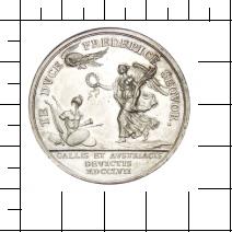 Die Medaille auf die militärischen Siege Friedrichs II. von Preußen ist eine Arbeit des englischen Medailleurs Thomas Pingo. Großbritannien hatte keinen unerheblichen Anteil an den militärischen Siegen Friedrichs. Ermöglichten doch die englischen Subsidien neben anderen Geldeinnahmen Friedrich die Weiterführung seiner kostspieligen Kriege.