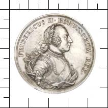 Nicht nur wegen der territorialen Erweiterung Preußens und der langen Regierungszeit hat Friedrich II. (1740-1786) das größte numismatische Erbe Preußens hinterlassen. Er ist auch münzgeschichtlich der bedeutendste der preußischen Könige. Im Jahre 1750 wurde durch den von ihm berufenen Generalmünzdirektor Johann Philipp Grauman (Graumann) eine durchgreifende Neuordnung des Münzwesens vorgenommen. Die Basis bildete nunmehr ein 14-Talerfuß, d. h. aus der Mark Silber zu 233,86 g sollten 14 Taler geprägt werden. In der Hoffnung, dass der neue Taler sich auch außerhalb Preußens durchsetzen würde, ist vollmundig die Bezeichnung 'Reichstaler' gewählt worden. Mit der Einführung des neuen Münzfußes war zugleich eine Reorganisation der preußischen Münzstätten verbunden, die fortan mit einem Buchstaben anstelle der Münzmeisterinitialen auf den Münzen signierten. In der Reihenfolge ihrer Reorganisation erhielten die preußischen Münzstätten die Buchstaben: A Berlin, B Breslau, C Cleve, D Aurich, E Königsberg, F Magdeburg, G Stettin. 1764 ist der sog. 'Graumansche Münzfuß' verbessert worden und galt nun für alle Silbermünzen vom Taler bis zum Doppelgroschen. In allen Münzstätten wurden die Münzen nach einem einheitlichem Bildtyp geprägt. Die Scheidemünzen blieben den Erfordernissen der einzelnen Provinzen angepasst. Zu Exportzwecken und für den Fernhandel sind sog. Handelsmünzen hergestellt worden, die sich durch ungewöhnliche Münzbilder auszeichnen und wegen ihrer geringen Prägezahl zu den besonderen Seltenheiten zählen.