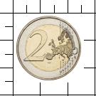 2 EURO. Karte der europäischen Union, zwölf Sterne auf dem Rand, Wertangabe. Am rechten Rand die Signatur LL (Luc Luycx). |