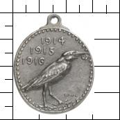 1914 / 1915 / 1916. Das Merseburger Wappentier, der Rabe, steht mit einem Ring im Schnabel nach rechts auf einem Lorbeerzweig. Im l. F. Jahreszahlen, rechts die Signatur GAUL. |