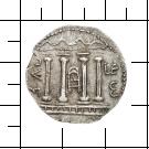Shimon [auf Hebräisch]. Viersäulige Tempelfassade, im Innern des Tempels ist die Bundeslade sichtbar.