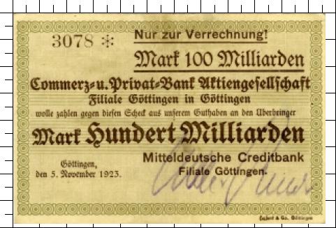 Mitteldeutsche Creditbank Filiale Göttingen: 100 Milliarden Mark 19231923 |
