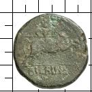 Die Rückseite trägt das bekannte Motiv des iberischen Reiters. Dieses stellte seit ca. 180 v. Chr. eine gängige Bildformel der Städte der Hispania Citerior dar. Als während des Sertorianischen Krieges Osca zum Hauptstützpunkt der Aufständischen unter Sertorius wurde, stieg das Motiv des iberischen Reiters zum Emblem der Revolte auf. Dennoch verwendeten einige Städte wie Bilbilis oder Osca dieses Motiv auch in der frühen Kaiserzeit noch. Vgl. dazu M. P. García-Bellido - C. Blásquez, Diccionario de cecas y pueblos hispánicos (2001) 64. Die genaue Identität oder Funktion des Reiters (Gott oder Heros?) ist weiterhin ungeklärt. Vgl. A. Arévalo, La moneda hispanica del jinete ibérico: estado de cuestión, in. F. Quesada - M. Zamora (Hrsg.), El caballo en la Antigua Iberia (2003) 63-74.