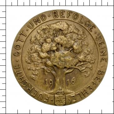 FUERCHTE GOTT UND BEFOLGE SEINE BEFEHLE -/ 19-16. Eichenbaum. Zu beiden Seiten die geteilte Jahreszahl und unten das bekrönte Wappen von Anhalt.