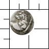 Viergeteiltes Quadratum incusum, in den zwei vertieften, diagonal gegenüberliegenden Quadraten befindet sich mittig einmal ein Punkt und einmal ein Getreidekorn. |