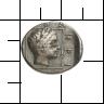 [Α]ΒΔ-HPI-[TE-ΩΝ]. Kopf des Apollon mit Lorbeerkranz im Linienquadrat nach r. Umlaufend das Ethnikon. |