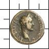 ΠAV[TA]ΛI-ΩTΩN. Apollon (oder Bonus Eventus?) steht nackt in der Vorderansicht, den Kopf nach l. gewendet. In der gesenkten l. Hand ein Zweig, die r. Hand ist vor den Körper erhoben.
