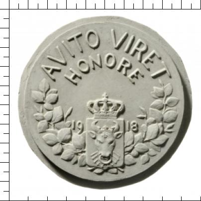Einseitiges Gipsmodell. - Es handelt sich wohl um das Rückseitenmodell zur Medaille auf Adolf Friedrich VI. Großherzog von Mecklenburg-Strelitz. Siehe hier die Objektnummer 18245639 für die Vorderseite.