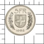Wertzahl 5 FR. über Schweizerkreuz, beiderseits je ein Zweig. Unten die Jahreszahl.