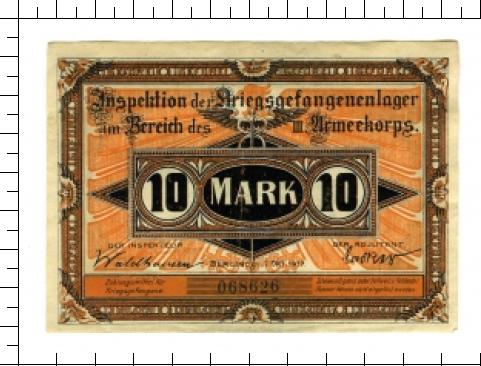| Inspektion der Kriegsgefangenenlager III. Armeekorps, Cottbus: 10 Mark 19171917 | |
