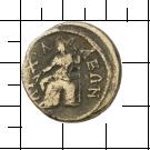 ΑΓ-ΧIΑ-ΛEΩN. Demeter mit Stephane und Schleier sitzt auf einem Korb nach l. In der vorgestreckten r. Hand hält sie zwei Ähren und die l. Hand stützt sie auf eine lange Fackel.