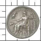 ΒΑΣΙΛΕΩΣ - AΛEΞANΔPOY. Zeus Aetophoros sitzt auf einem Thron nach l., in der l. Hand ein Zepter. Im l. F. fliegt Nike nach r., hält einen Kranz mit beiden Händen. Darunter ein Hermesstab (kerykeion) nach oben. Unter dem Thron ein Monogramm. Im Abschnitt Θ.