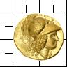 Kopf der Athena mit korinthischem Helm nach r. Auf dem Helmkessel eine Schlange nach r.