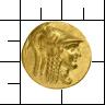 Kopf der Athena mit korinthischem Helm nach r. Auf dem Helmkessel ein Greif nach r.