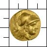Kopf der Athena mit korinthischem Helm nach r. Auf dem Helmkessel ein Greif nach r.