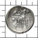 [A]ΛΕΞΑΝΔΡΟΥ. Zeus Aetophoros sitzt auf einem Hocker (diphros) nach l., in der l. Hand ein Zepter. Im l. F. ein attischer Helm nach l.