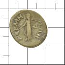 ΓΕΡΜΗ-ΝΩΝ. Apollon steht im langen Gewand in der Vorderansicht. In der r. Hand hält er eine Schale (phiale) und im l. Arm eine Leier (lyra).