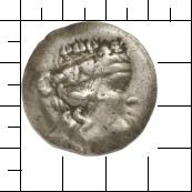 Überprägt. Nach Prokopov (2006) sind die Tetradrachmen thasischen Typs meist in Makedonien geprägt.