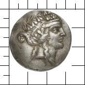 Überprägt. Nach Prokopov (2006) sind die Tetradrachmen thasischen Typs meist in Makedonien geprägt.