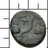 [Α]ΔΡΑ-Μ[Y]/Τ[HΝ]ΩΝ. Kappen (piloi) der Dioskuren mit je einem Stern darüber, dazwischen ein Füllhorn (cornucopiae). Im l. F. unten ein Monogramm.
